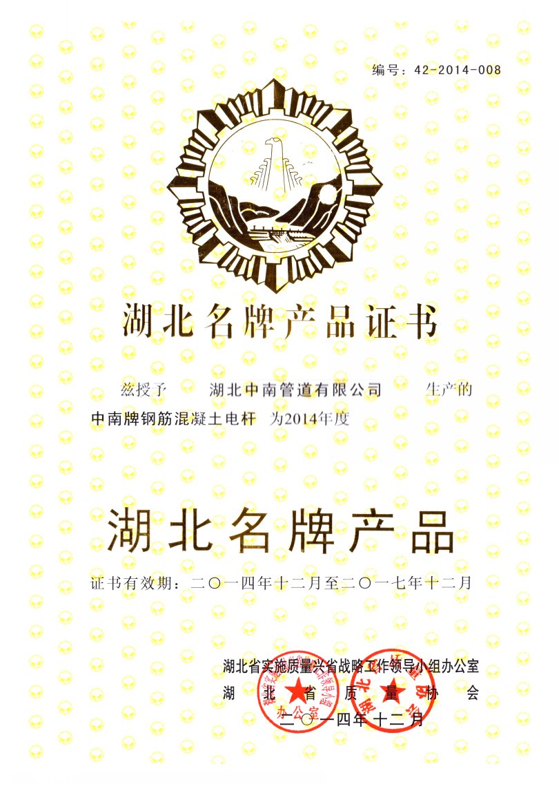 湖北中南管道有限公司始建于1952年,原屬?lài)?guó)家建材部直屬企業(yè),是國(guó)家三大水泥制品骨干企業(yè)之一。曾為************座長(zhǎng)江大橋——武漢長(zhǎng)江大橋生產(chǎn)特制大橋桿;為馬耳他等國(guó)援建多座水泥制品廠(chǎng);首創(chuàng)的國(guó)內(nèi)環(huán)形力混凝土電桿和三階段混凝土壓力管榮獲1978年全國(guó)科技大會(huì)科研成果獎(jiǎng)及優(yōu)秀產(chǎn)品獎(jiǎng)。公司現(xiàn)有資產(chǎn)規(guī)模億元,擁有25項(xiàng)實(shí)用新型專(zhuān)利、3項(xiàng)發(fā)明專(zhuān)利,是國(guó)家大力支持和發(fā)展的高新技術(shù)企業(yè)。主要生產(chǎn)環(huán)形混凝土電桿、預(yù)應(yīng)力鋼筒混凝土管、鋼筋混凝土排水管、頂進(jìn)施工法用鋼筒混凝土管、預(yù)制混凝土箱涵、鋼筋混凝土異形管等產(chǎn)品,是《環(huán)形混凝土電桿》、《預(yù)應(yīng)力鋼筒混凝土管》、《混凝土和鋼筋混凝土排水管》、《預(yù)制混凝土箱涵》、《異形鋼筋混凝土異形管》、《混凝土和鋼筋混凝土排水管試驗(yàn)方法》、《管廊工程用預(yù)制混凝土制品試驗(yàn)方法》等國(guó)家標(biāo)準(zhǔn)的參編單位,目前擔(dān)任全國(guó)混凝土與水泥制品協(xié)會(huì)常務(wù)理事單位、湖北省混凝土與水泥制品協(xié)會(huì)會(huì)長(zhǎng)單位。